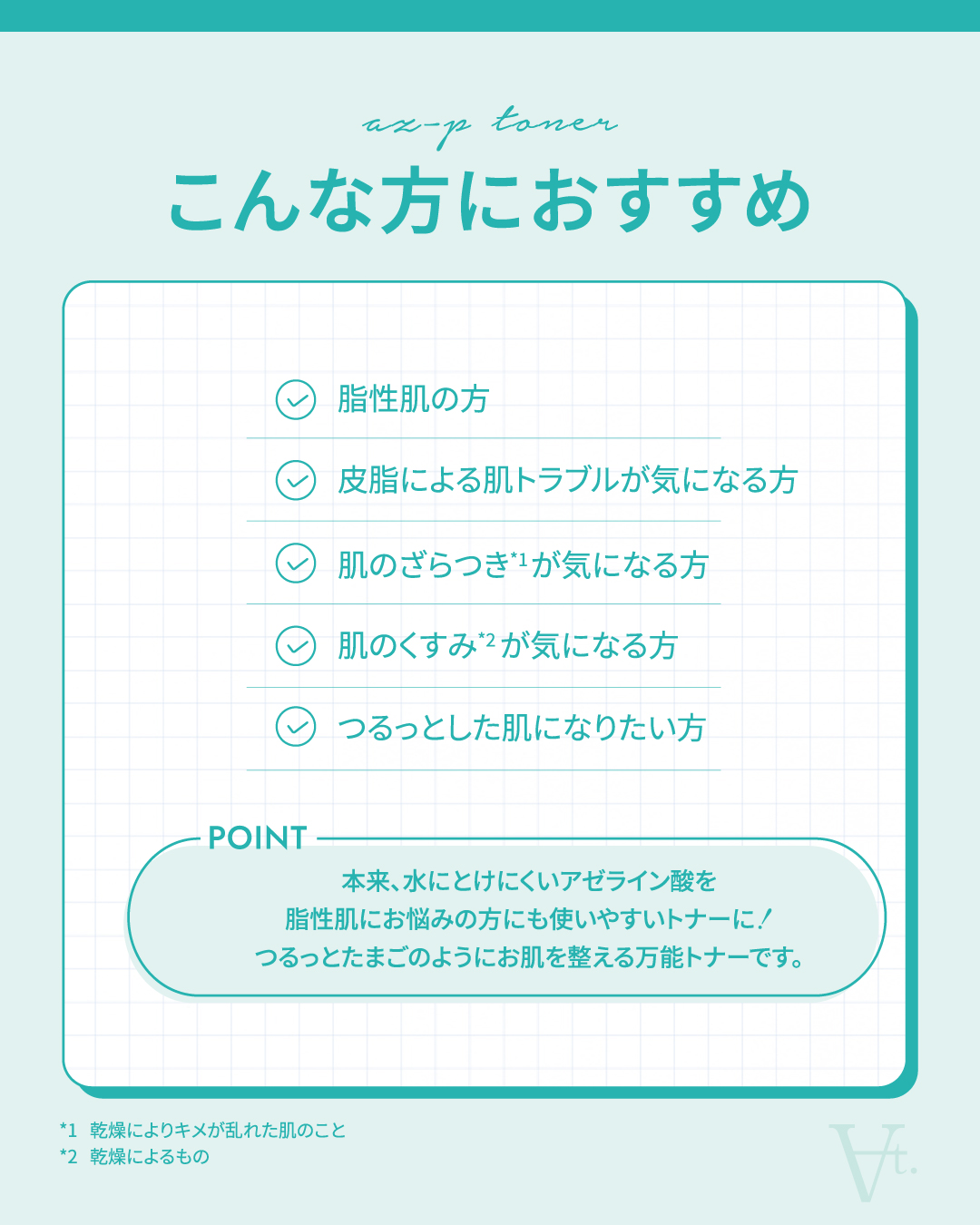 即効型&持続型 Wのアゼライン酸*2がすこやか肌へ導く。