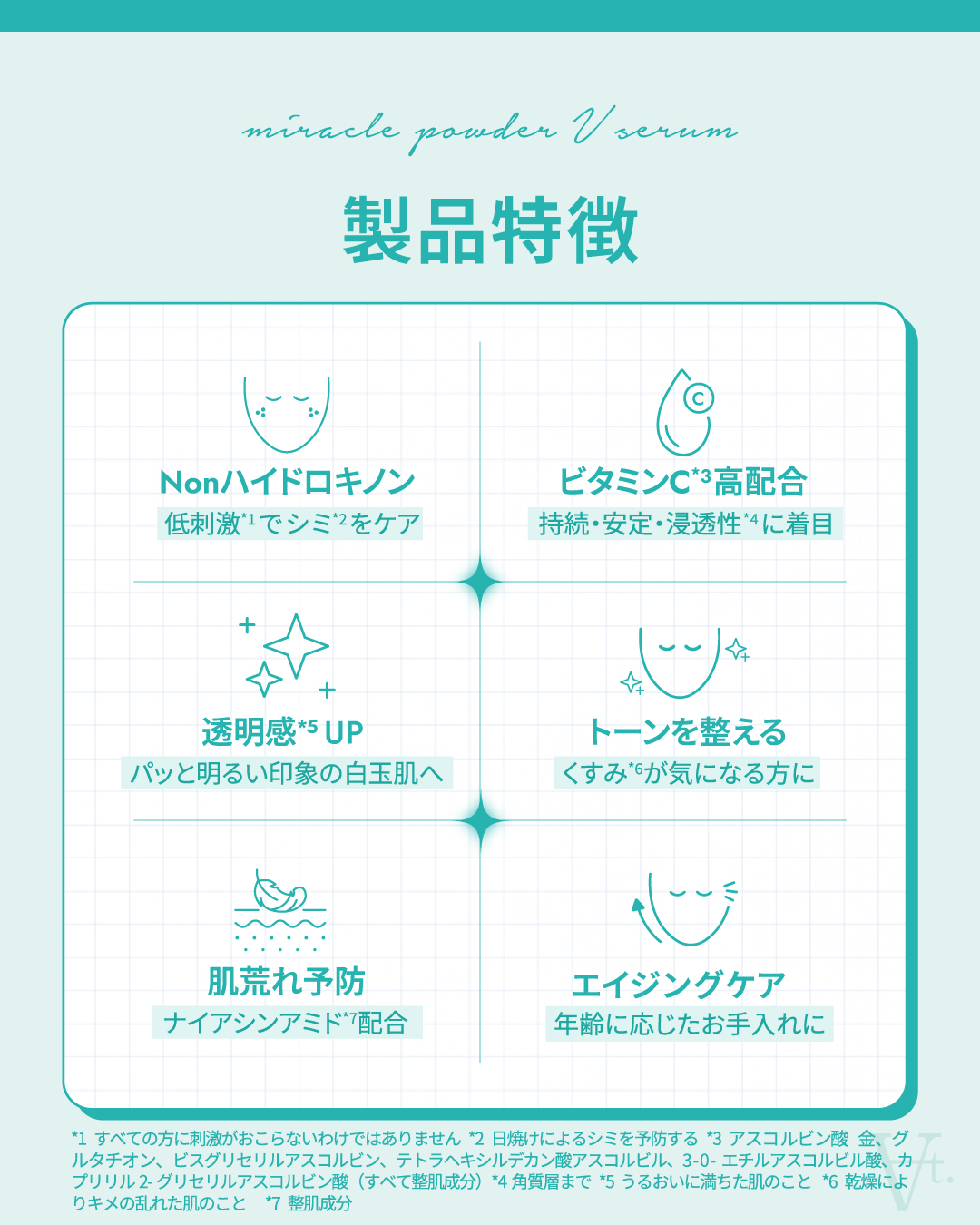 *1 アスコルビン酸、金、グルタチオン(整肌)テトラヘキシルデカン酸アスコルビル(整肌)、カプリリル2-グリセリルアスコルビン酸(整肌)